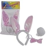 Become a bunny any day of the year with this bunny set. This 3 piece disguise set features cute bendable ears, a pink bow with an elastic strap, and a tail with elastic strap. So, whenever in the mood to disguise, just grab your 3 piece bunny set and you are set to go!In this Halloween night. You 're very Cool person. Get the low price and good quality 3 Piece White Easter Bunny Rabbit Costume Head Band Ears Headband with Cottontail Tail & BOW TIE.