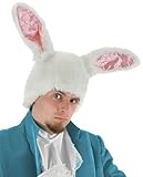 Alice White Rabbit Headpiece - This deluxe, rabbit hat is constructed of the finest faux-fur and features screen printed detailing on each of the pink satin ears. Hat is officially licensed by Disney for the Alice in Wonderland Line. Made of faux fur and satin.