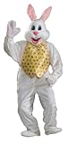 - Polyester white plush jumpsuit, mitts, and shoe covers; vest and bow tie with decorated easter eggs